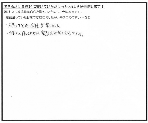 スタッフとの会話が楽しかった・・・・(K.N様 / 40代)