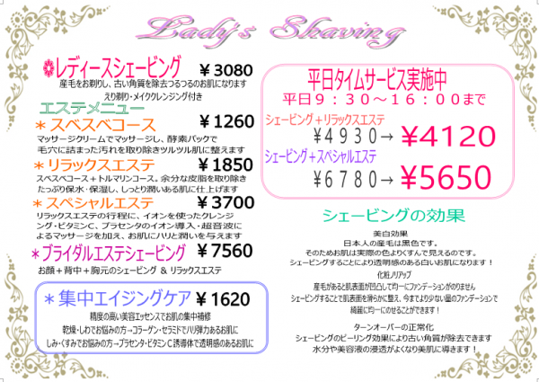 お顔剃りできるサロンが少なくなっていますがうちでは