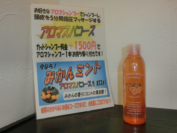 超爽快の「メガミント」も根強い人気がありますが、「みかんミントがちょうどイイ!」と言う方も多く人気のアロマシャンプーです!